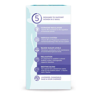 Health & Her Sleep+ Multi Nutrient Support Supplement is designed to help women unwind and achieve better quality sleep. With a soothing blend of ingredients including Chamomile, Lavender, Hops, and Ashwagandha, it supports the body’s natural ability to relax and prepare for rest. Magnesium and Vitamin B6 contribute to the normal functioning of the nervous system and help reduce tiredness and fatigue, while Glycine and Taurine work synergistically to promote calmness. These ingredients are known for their gentle yet effective properties in supporting sleep hygiene and mental clarity by morning. This supplement is ideal for women experiencing sleep difficulties due to stress, hormonal changes, or lifestyle demands. With regular use, it encourages more consistent sleep patterns and helps you feel refreshed and rebalanced. The once-daily capsule fits easily into a relaxed bedtime routine, supporting both body and mind for a better night's sleep.