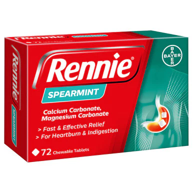 Rennie Spearmint Chewable Tablets provide quick and effective relief from heartburn and indigestion with a refreshing spearmint flavour.
